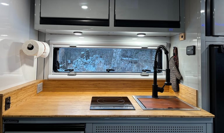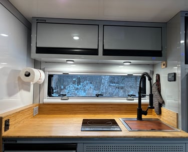 Every 6.5ft camper is built using high-strength, insulated fiberglass composite panels sourced through our partner Cascadia Composites. Panel construction creates a rigid, lightweight shell that dramatically outperforms traditional wood or aluminum builds. These campers are designed and tested in Alaska — where cold, wind, and isolation expose weak builds fast. If it performs here, it performs anywhere.