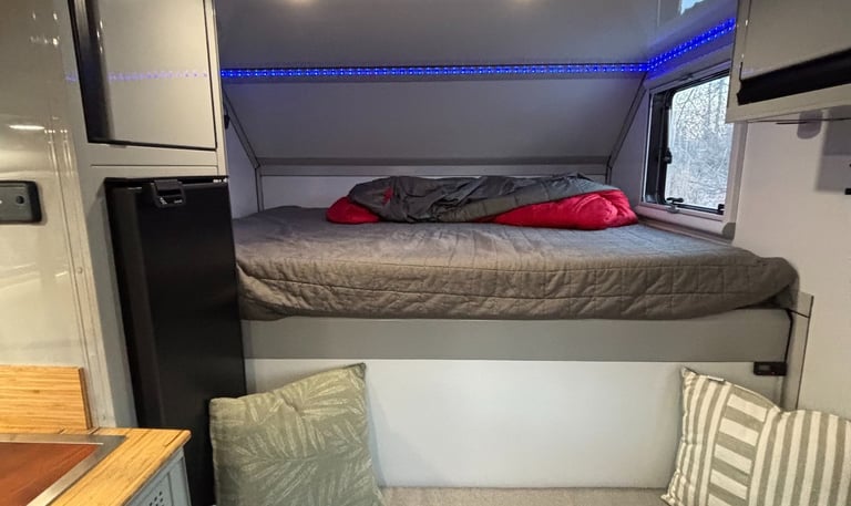 Our 6.5ft slide-in campers are designed for adventurers who want a compact footprint without giving up strength, warmth, or comfort. Every unit is fully built, and ready to travel the moment it leaves our shop.
